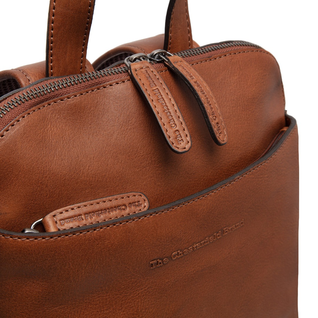De leren rugzak bevat meerdere vakken, in het hoofdvak zitten twéé aparte rits vakken waardoor je meer opbergruimte hebt voor accessoires. Daarnaast zit er ook een handig smartphone vak in. Op de voorkant en achterkant bevindt zich een extra rits vak voor kleine accessoires. De leren rugzak heeft een lange schouderband die makkelijk te verstellen is.
